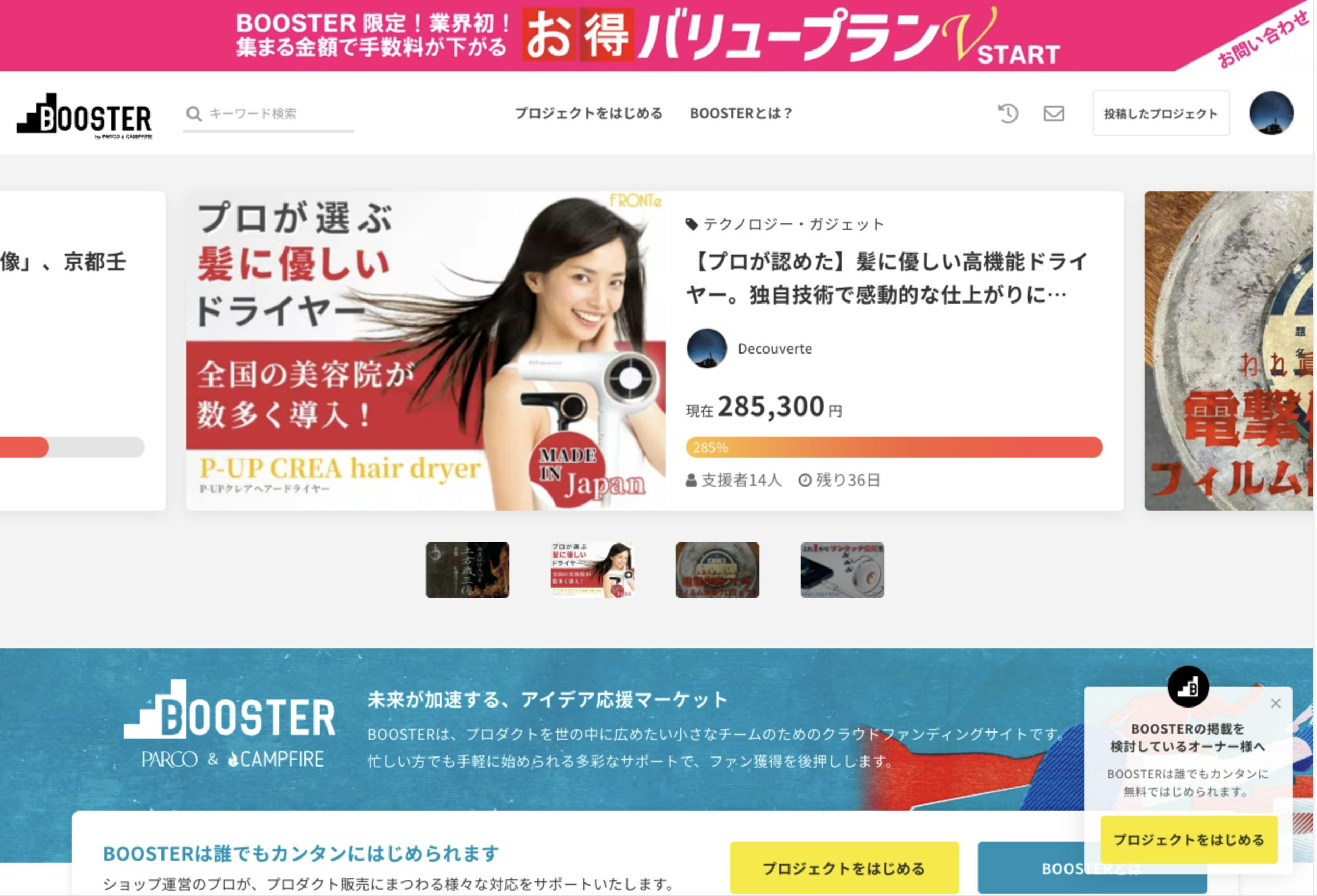 BOOSTERのTOPページにて、