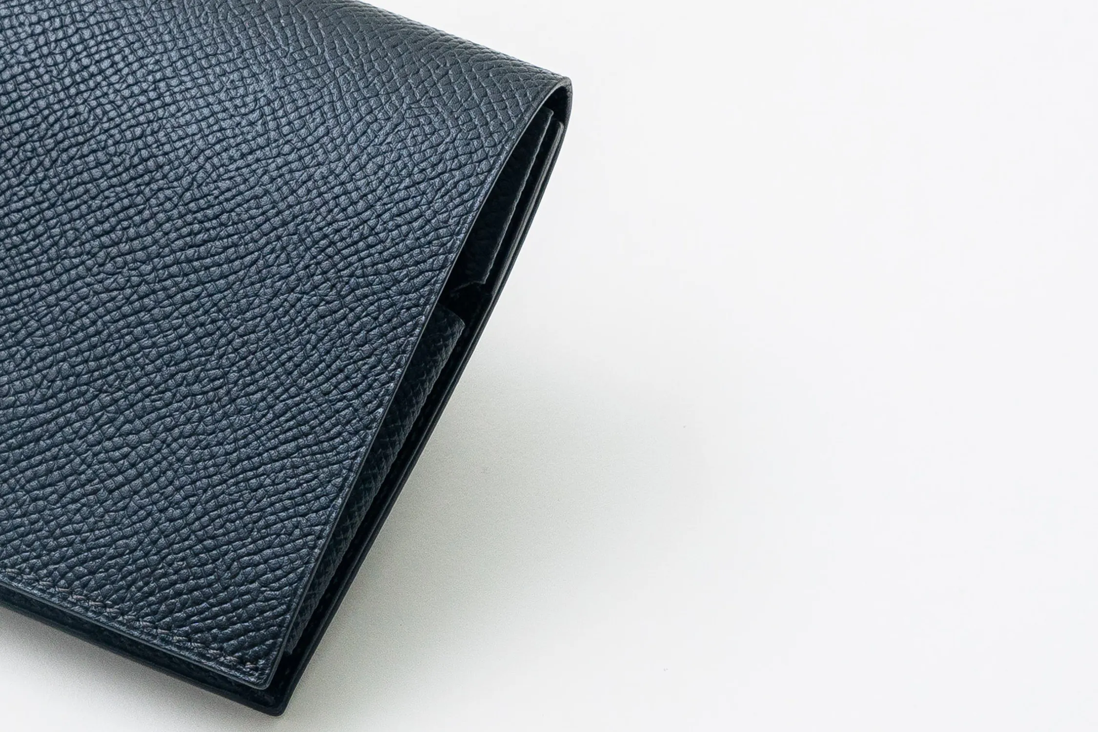 財布と他の革製品との違いに「折り目」があります。どのような形状の財布であれ、たいていは身ごろだったりカードやコインの収納部分のどこかに折り目がついています。そして、ほとんど毎日休みなく使い続けるうちにどうしても、その折り目にボコボコとシワができてしまう革がほとんどです。ところが、そういった摩耗や傷がつきものの財布の為に開発された革は、チリチリとわずかな細かいシワがでるのみで、きれいな状態を保ってくれます。革自体が上質で美しいのはもちろんですが、負荷がかかる部分に至るまで、財布にしっかりマッチしたレシピで革作りが行われています。
