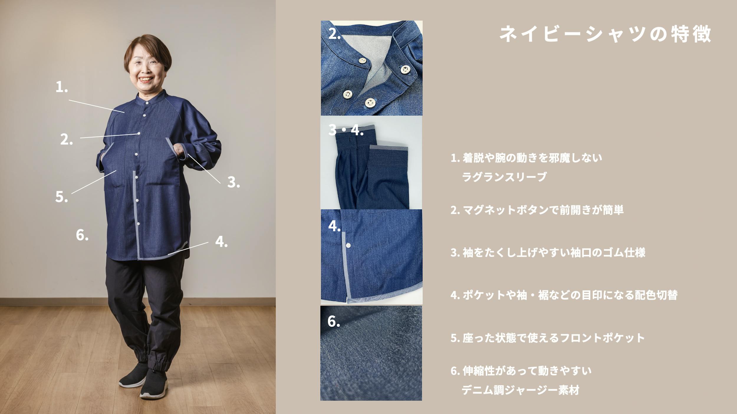 また、高齢の方や障がいのある方、リハビリ中の患者さまの中には、普段着の中でも「ボタンを止めたり、紐を結んだり、チャックを上げたりという細かな動作が難しい」「体型が変わり、持っている服や既製品が合わない」といった課題を持つ方も多いのが事実です。これまでの病衣は、患者さまの笑顔を望んでいながらもそうした「患者さまの課題解決」に寄り添いきれず、どうしても「医療従事者側の援助のしやすさ」に意識が向いてしまっていることが多かったように思います。