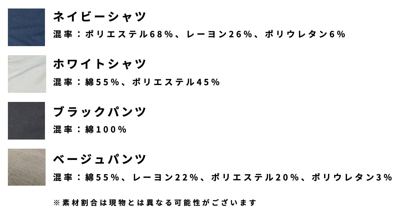 随所に「着脱しやすく、着心地の良い」工夫をこらしながら、トップスとボトムスそれぞれに、カラーと素材・特徴の異なる2種類ずつ計4アイテムをご用意しました。