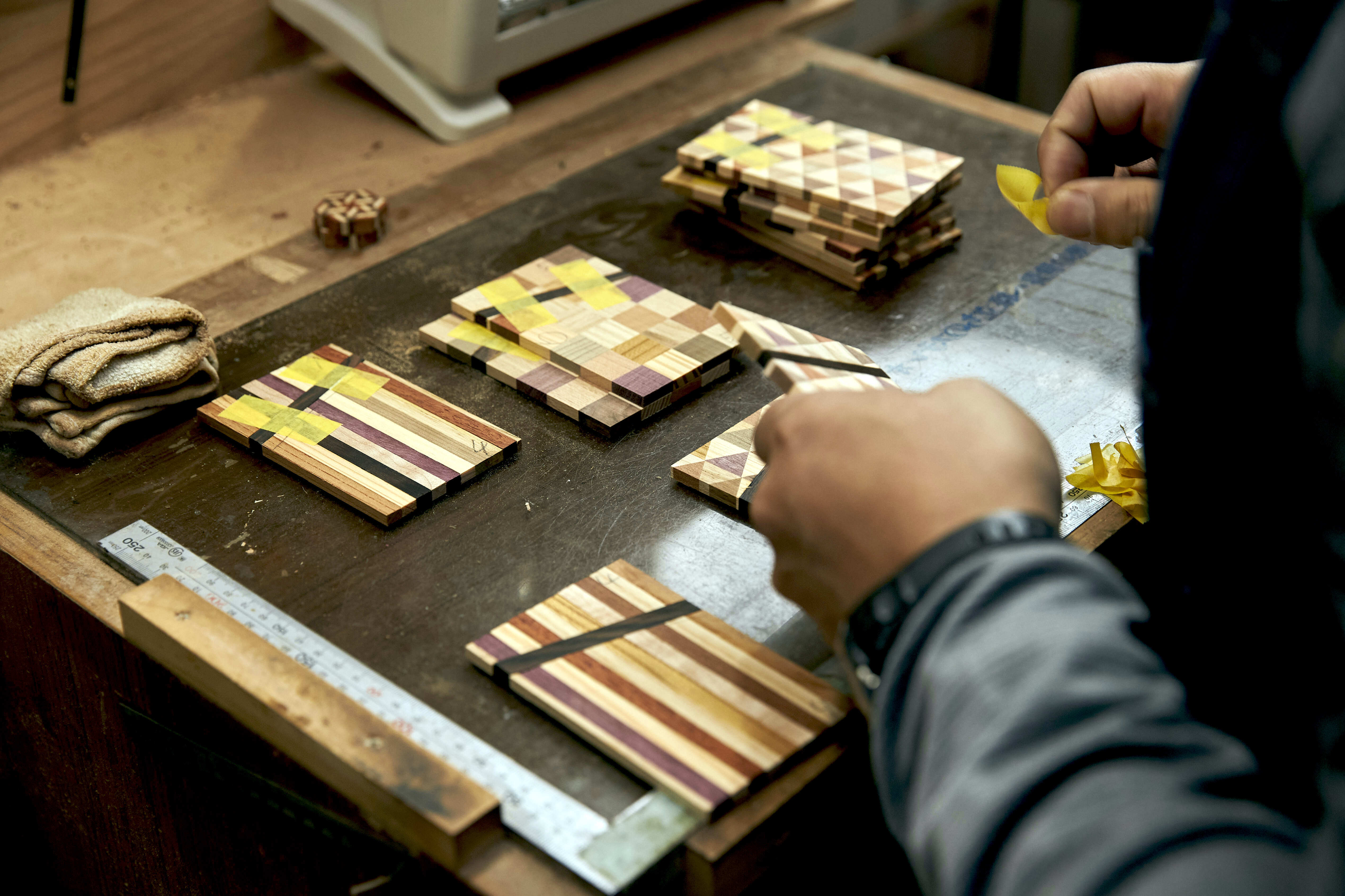 端材を何か違う形で残すことはできないかと考えていたときに出会った寄木細工。