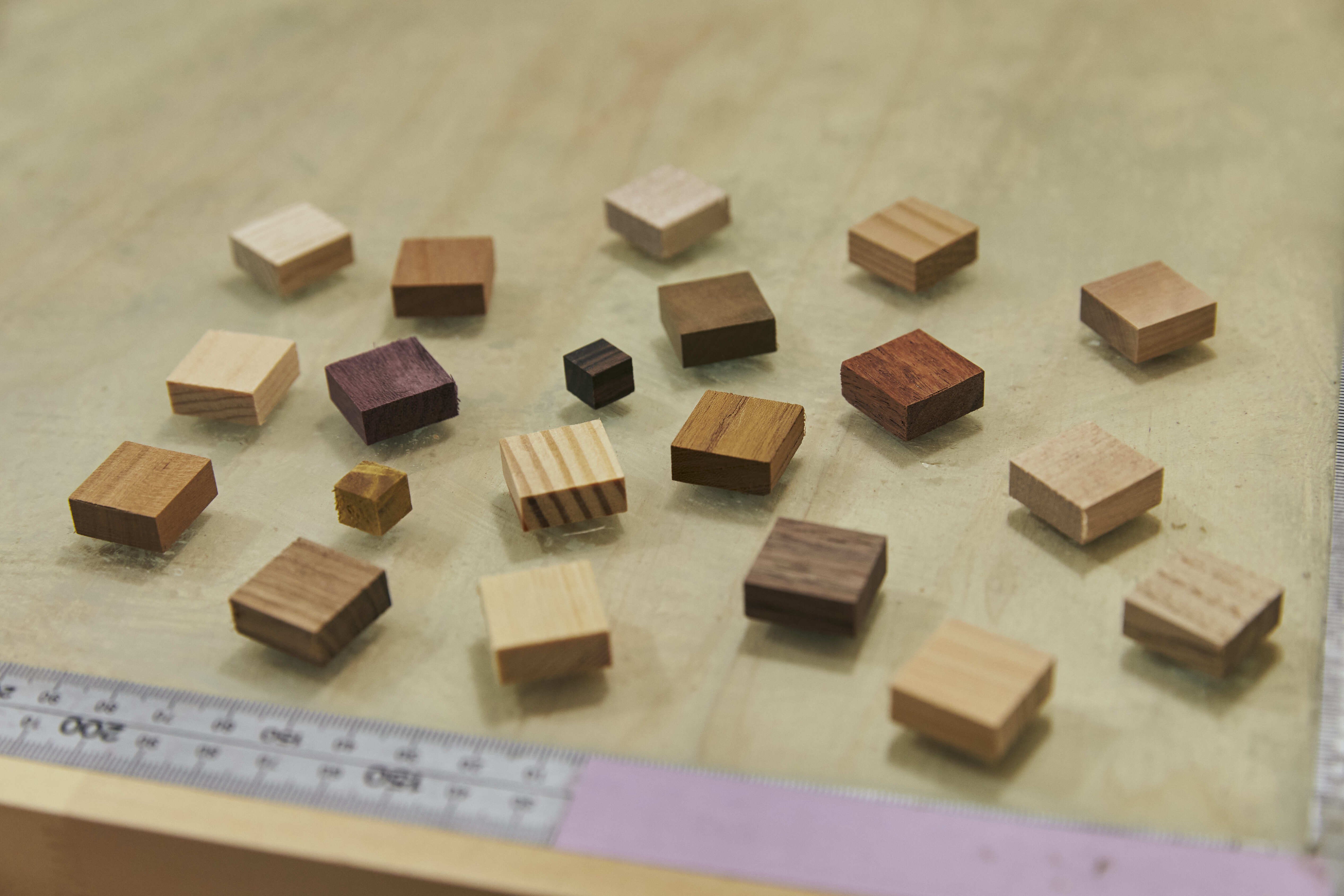 組み合わせる端材はその時手元にあるもの。役目を終えたかのように思えた端材から新たないのちが与えられる瞬間です。