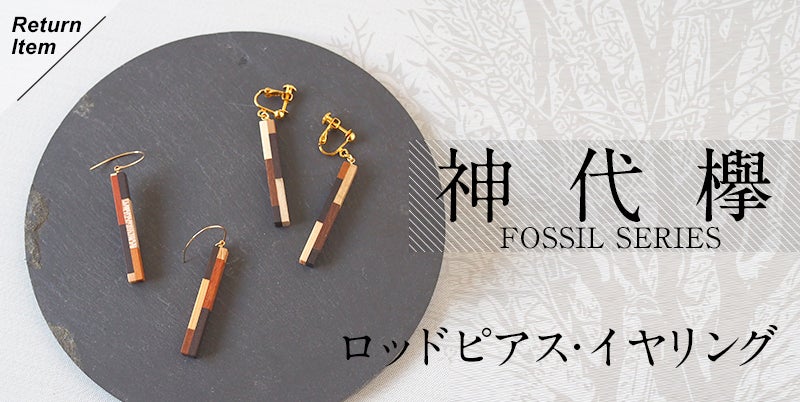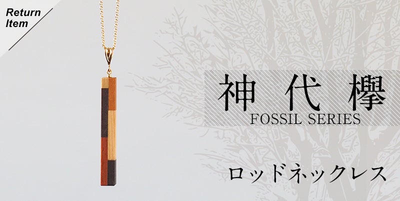 2700年前の希少な神代欅を使用したアクセサリーシリーズ、FOSSILシリーズ。