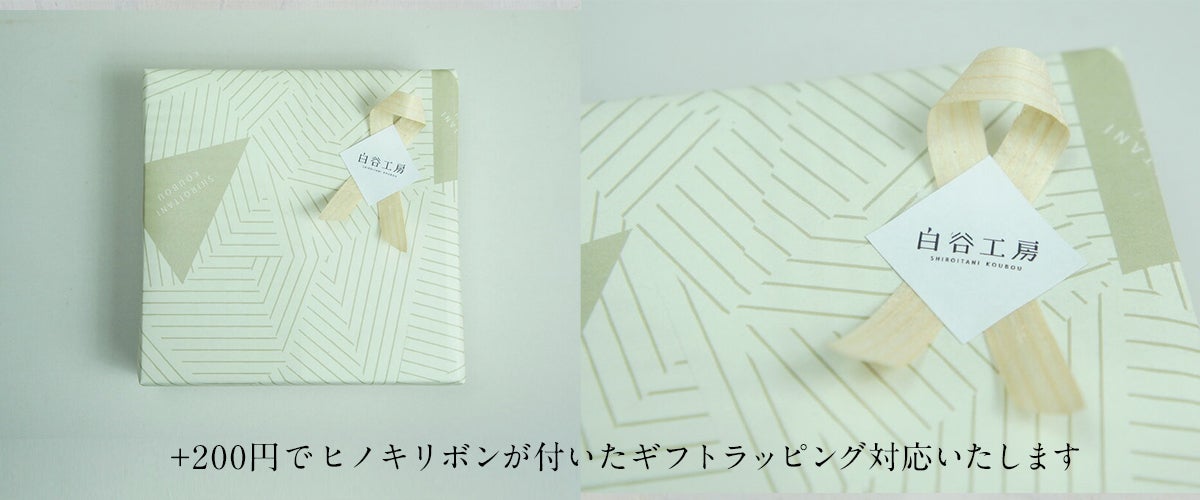 全ての商品に白谷工房の化粧箱が付属します。通常は有料で提供している化粧箱ですが、今回限り全ての商品にセッティングいたします。