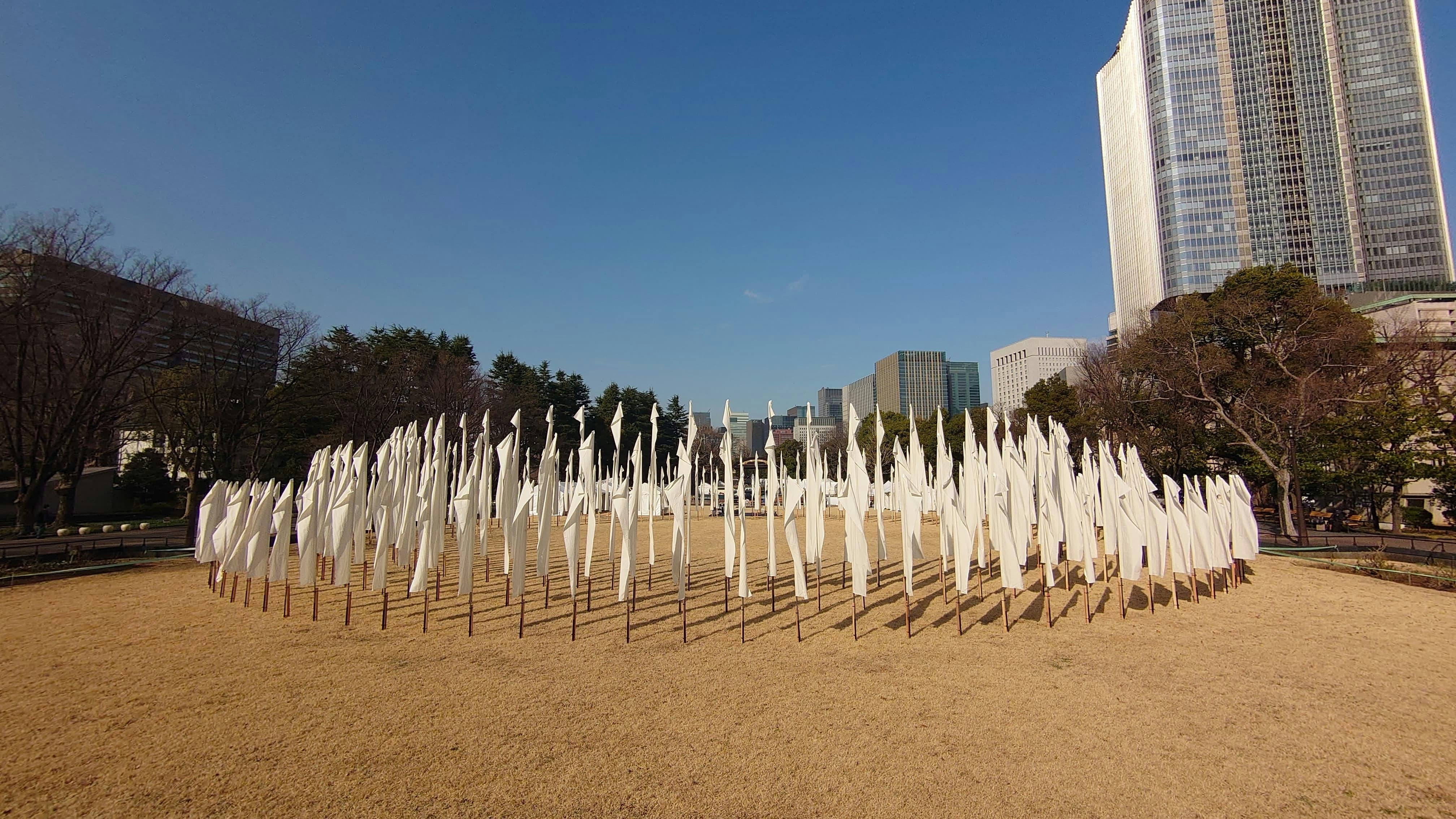 当初から「311本の旗が風と共にゆれる姿は、参加するそれぞれの想いと記憶を写し、それぞれのココロの中で意味と心象と共に完成します。」とお伝えしてきましたが、311本の旗は日比谷公園でその旗の輪の中に入り、360度の姿と共に体感していただきたいと願っています。