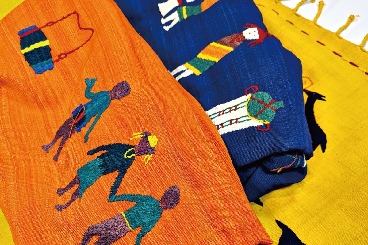 素材はすべて綿です。手織り手刺繍生地のため悪く言えばバラつき、よく言えば機械にはない味わいがあります。ご了承の上ご選択ください。