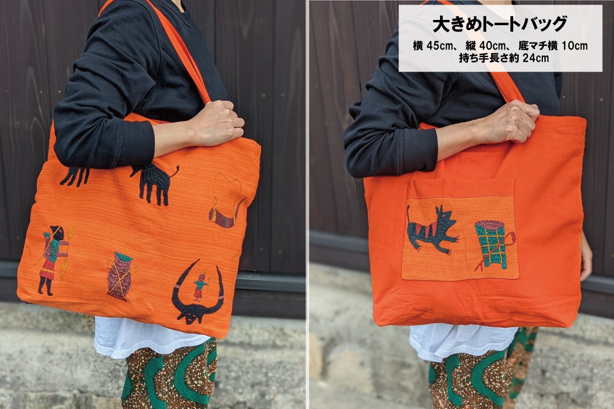 トートバッグサイズ:横45cm、縦40cm、底マチ横10cm 持ち手長さ約24cm