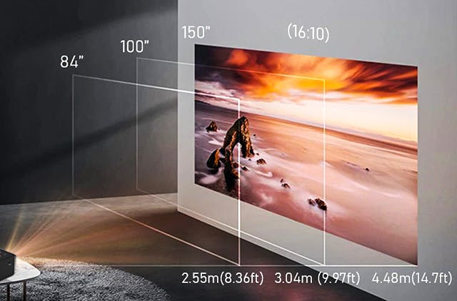 30cmー4mの投影が可能に。(3mの距離から100インチ程度)早速自分の家を映画館に改装しましょう。