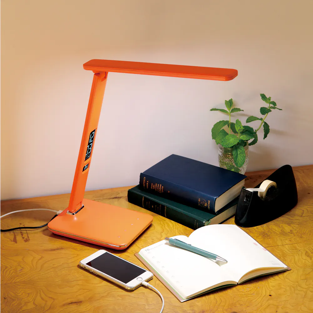 このデスクランプカラフルだけではなく、レザーのような質感もポイントなんです。