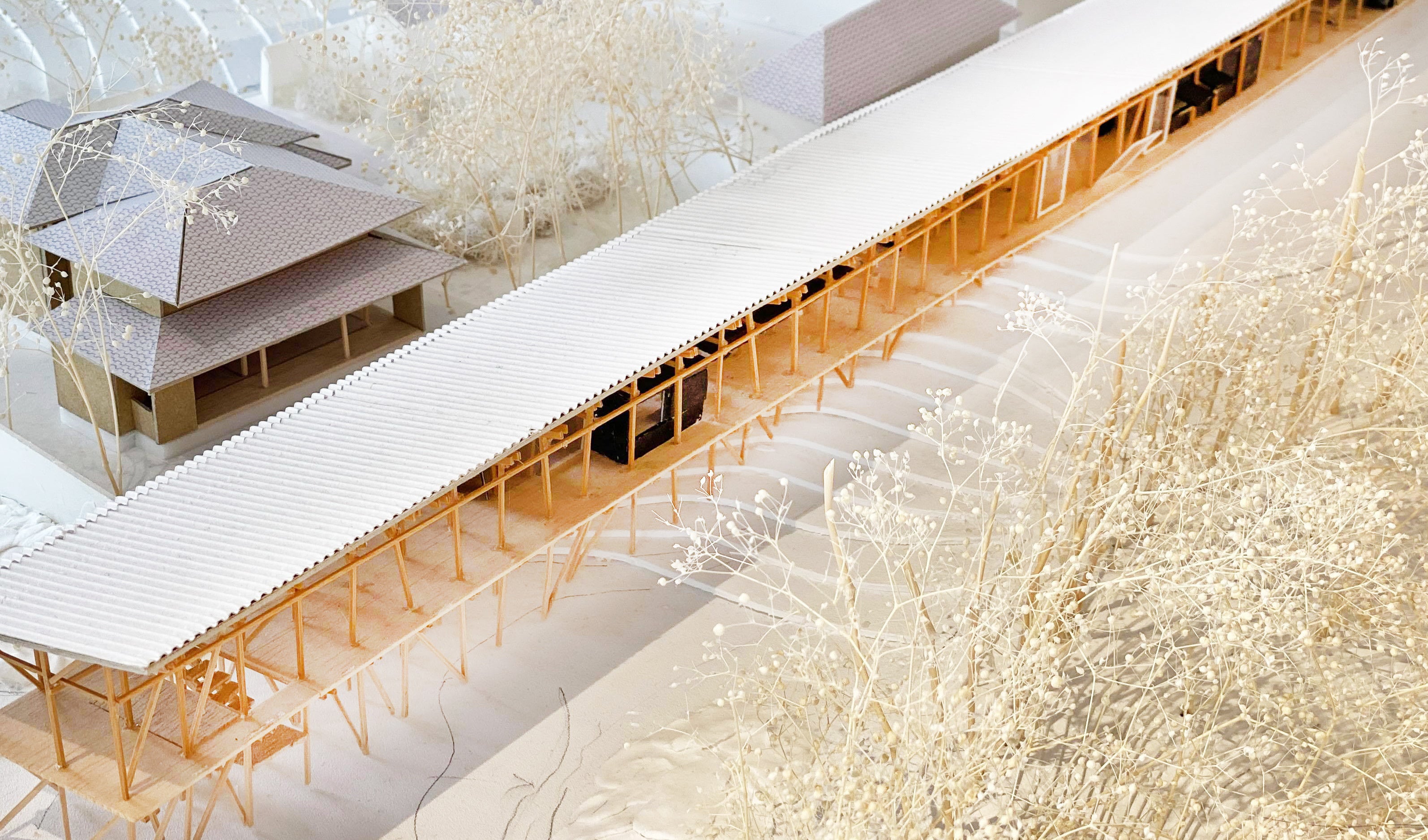 建物模型。長い縁側が中と外の空間を緩やかに繋ぐ