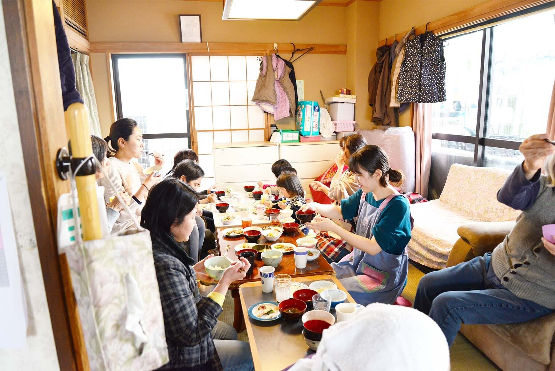 千葉県習志野市と千葉市にある2つの「いしいさん家」もまさにみんなのおうち。おじいちゃん、おばあちゃんはもちろん、スタッフの子供たちや障がいのある人、長い間引きこもっていた人などもいしいさん家で過ごします。みんなで泣いて怒って笑って。そんな日常を大切にする場所です。