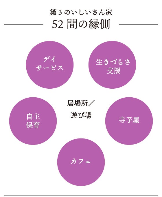 今回はその中の1つ、地域で誰もが時間を過ごせる拠り所、ケア拠点の「52間の縁側(ごじゅうにけんのえんがわ)」の話をさせてください。
