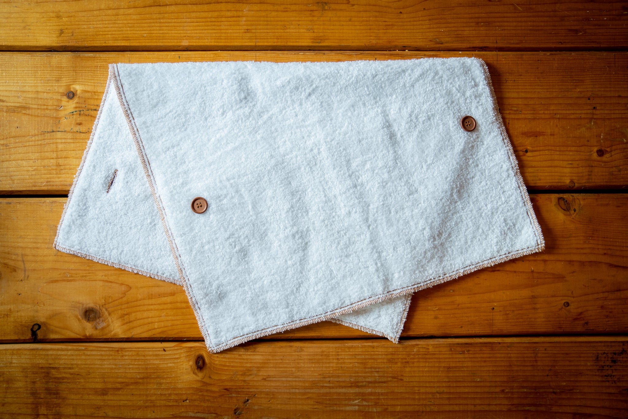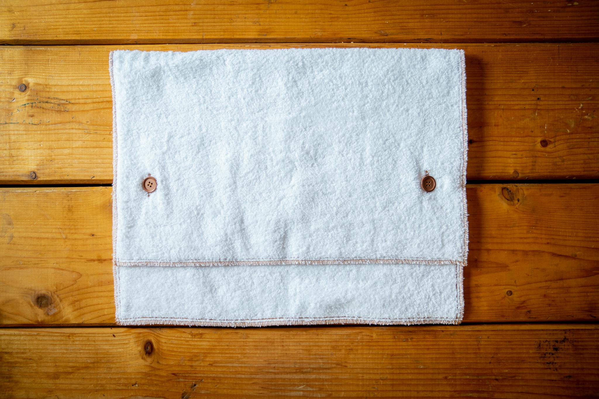 もちろん、ボタンを外せば普通のタオルとして体を洗ったり水滴を拭くのにも使えますし、洗濯機で丸洗いしてもOK!「サウナハットを持ち歩かなくても、とりあえずこのタオルが一本あればオッケー」っていう便利なやつです!
