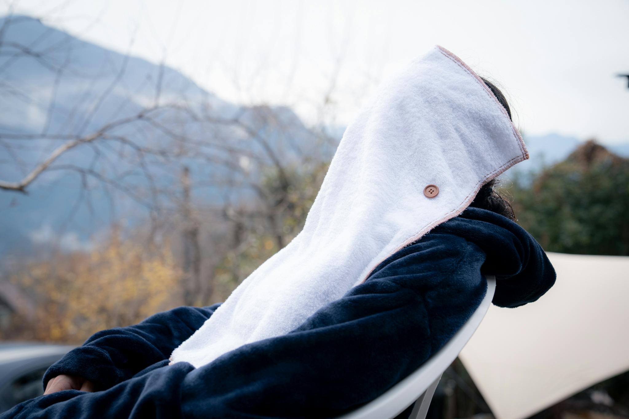 しかしながらメディテーションサウナがあちこちにあるわけではありませんし、普通のサウナだと明るくて集中できないことも多いので「今日は自分に向き合うぞ~」と思った時にはこのタオルを持ち込み、目まで覆うスタイルで入ることで周囲の環境に左右されづらくなります!