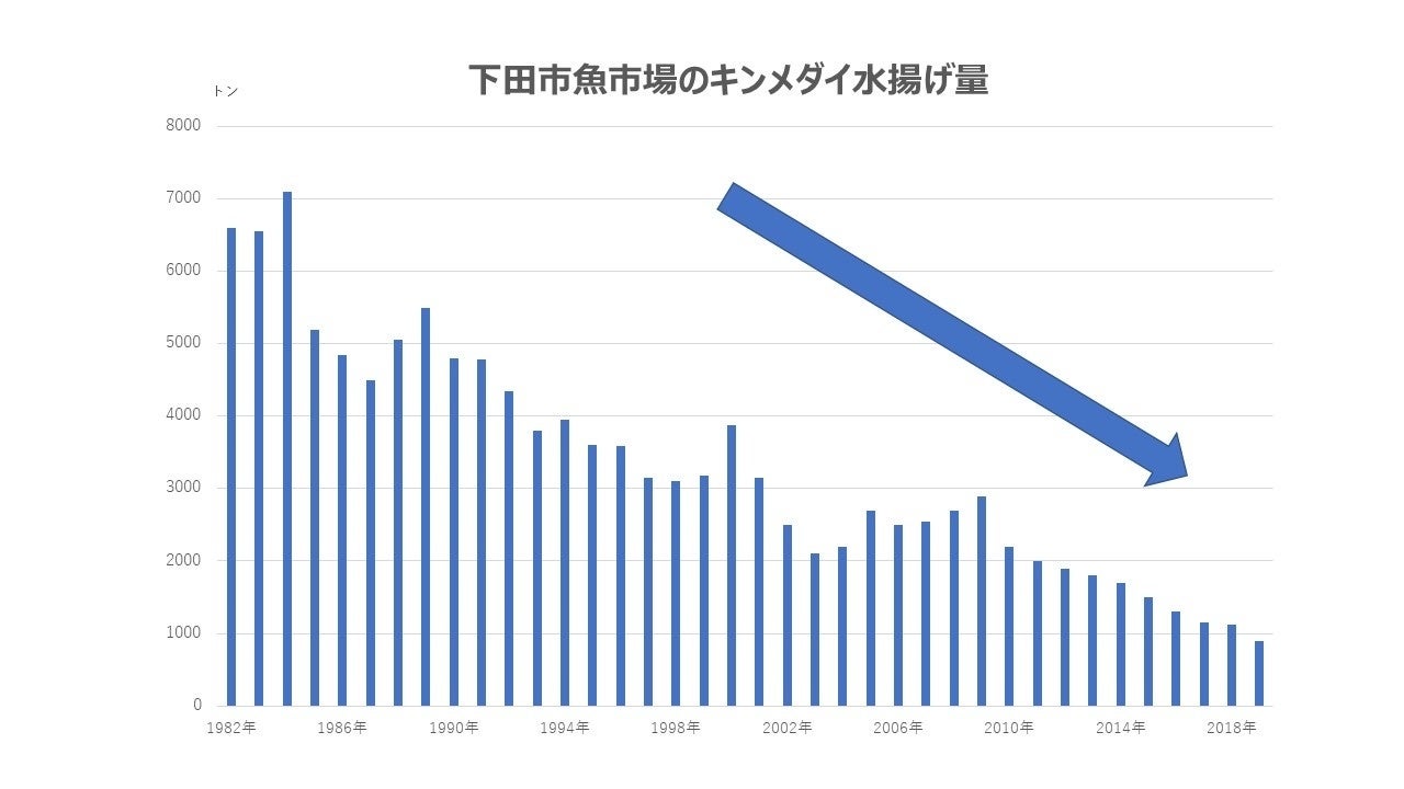 キンメダイの漁獲高は年々減少しています。