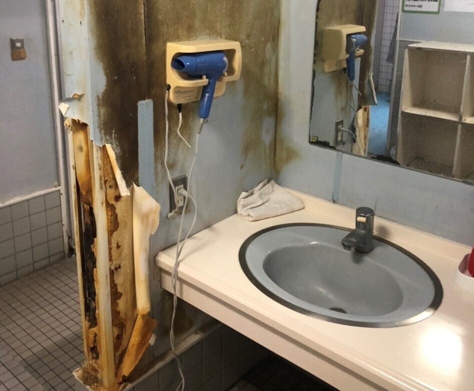 湿気でボロボロになった壁や錆びて穴の開いたロッカーなど、施設の至るところで限界が近づいております。できる限りの範囲で修繕は行ってきましたが、業者を呼んで大規模な修理を行うことが必要な段階になりつつあります。