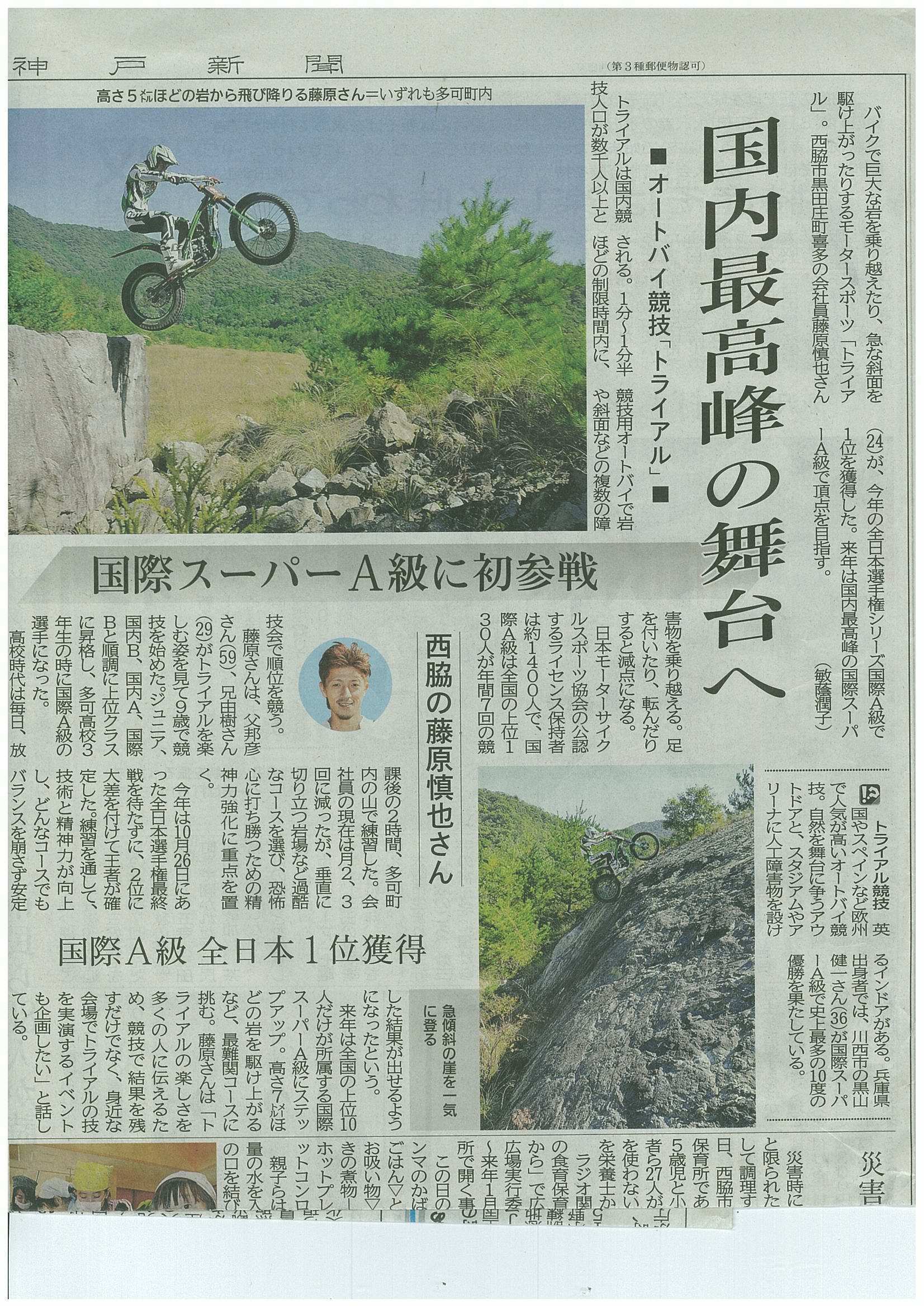 トライアルライダーの藤原慎也と申します。