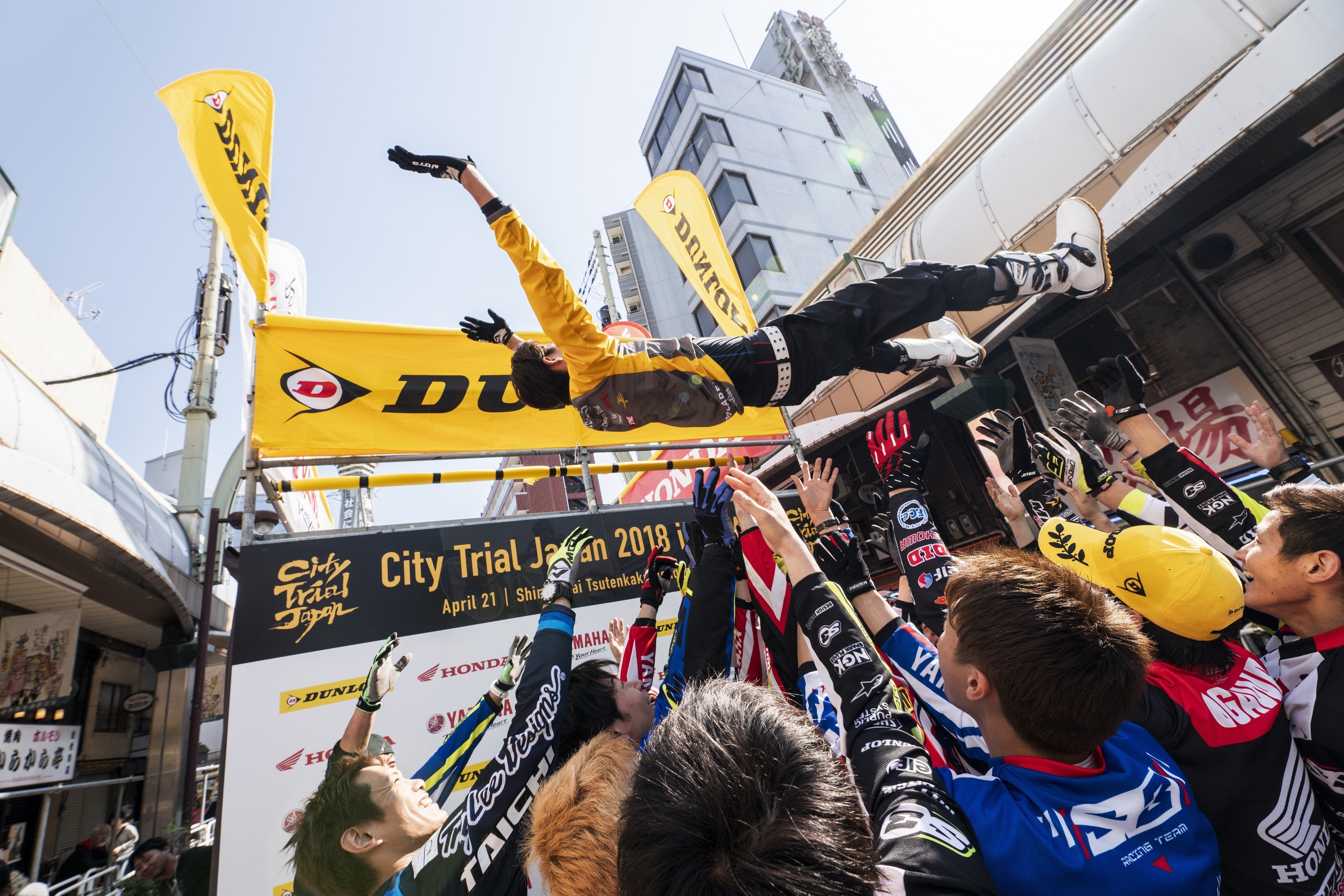 浪速区長をはじめ職員の皆さま、商店街組合、警察、消防、バイクの協会(MFJ)、選手の説明会など沢山の壁を越えて2018年4月21日「City Trial Japan 2018 in OSAKA」を開催できました。