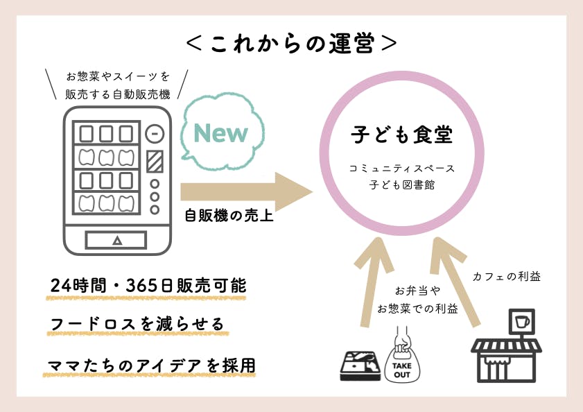 つまり自販機でお惣菜を購入することが自動的に子どもたちの支援・社会貢献に繋がっているのです。