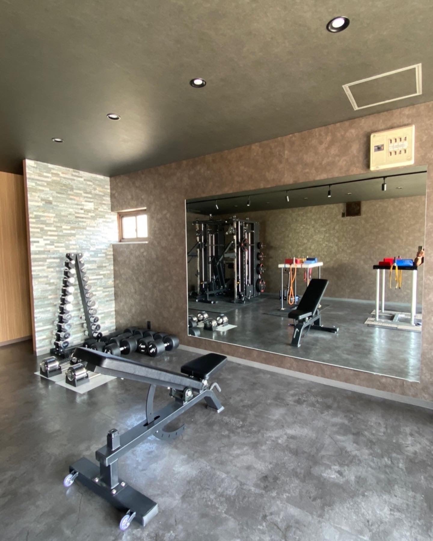 → 複合機・重量プレート(180kg分)・マット(6枚分)・ダンベルセット・エアロバイク・可変式ダンベル 等