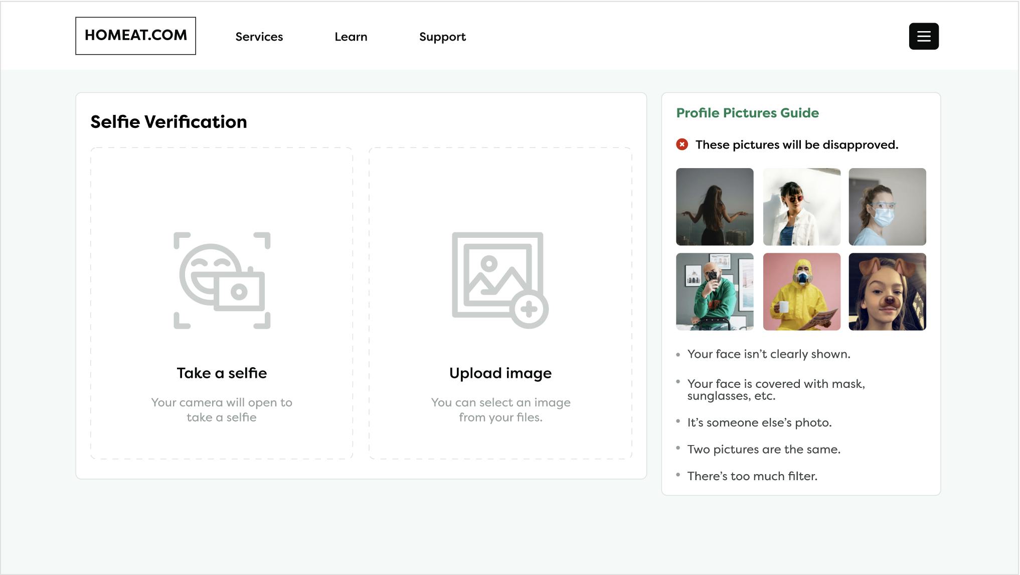 本サービスの強みの一つとして、アカウント作成時に顔認証システムを導入しています。アカウント作成に必要であるプロフィール画像、そしてパソコンのカメラで撮影される自撮り画像を比較し、偽のアカウント作成を阻止します。