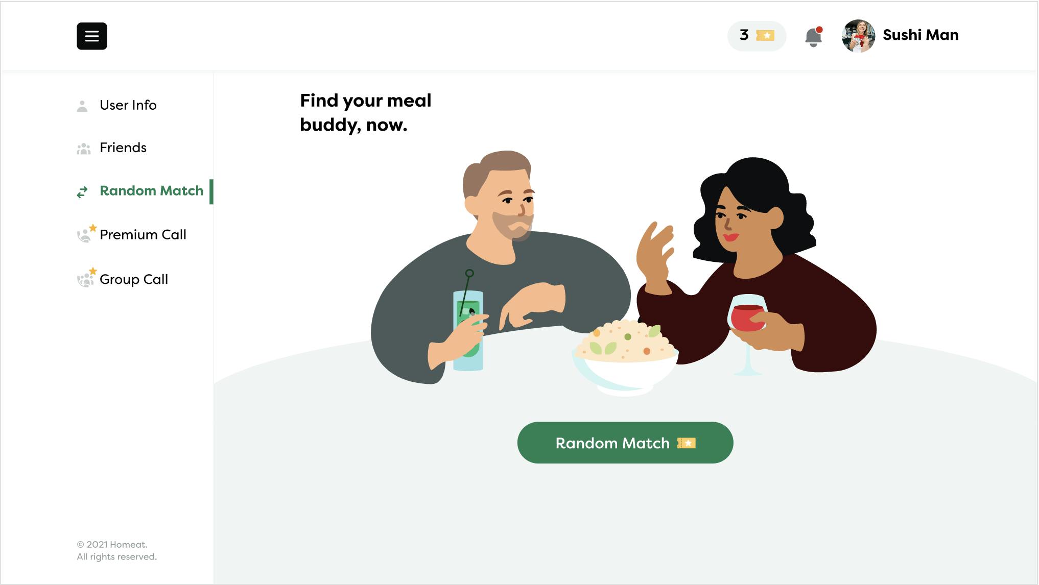 1対1の相席(Random Match)