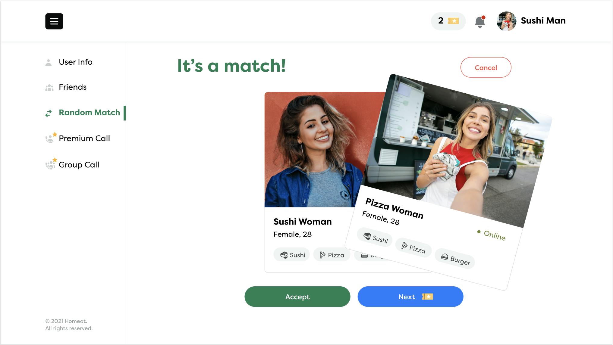 マッチした相手が合わなければ、サイト上の通貨であるチケットを使いスキップも可能。