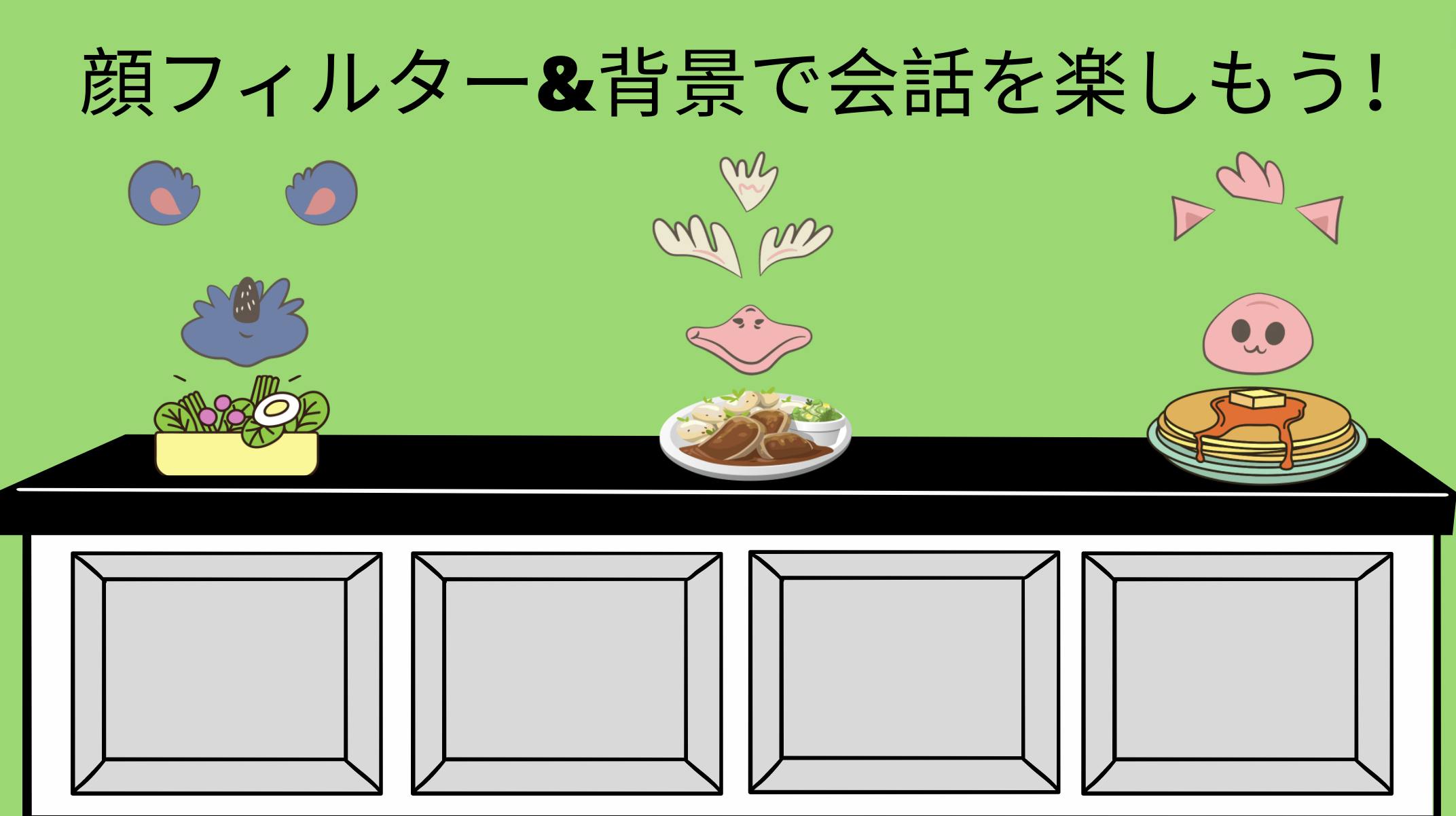 今は開発中ですが、気が合う人同士のコミュニティー作成、コミュニティー内での通話も可能にします。さらに、通話中に顔のフィルターや、背景も導入予定です。