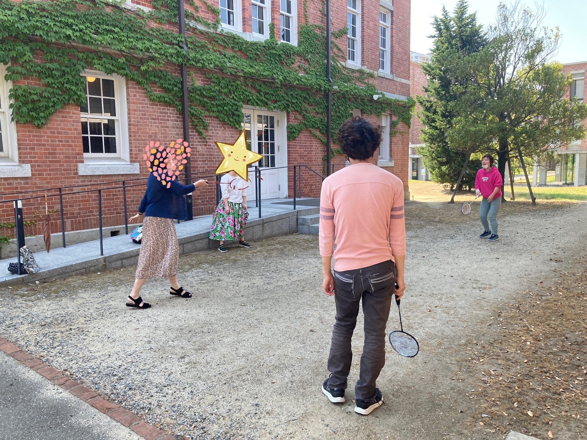 思いがけず参加された方がバドミントンのセットをお持ちくださり、