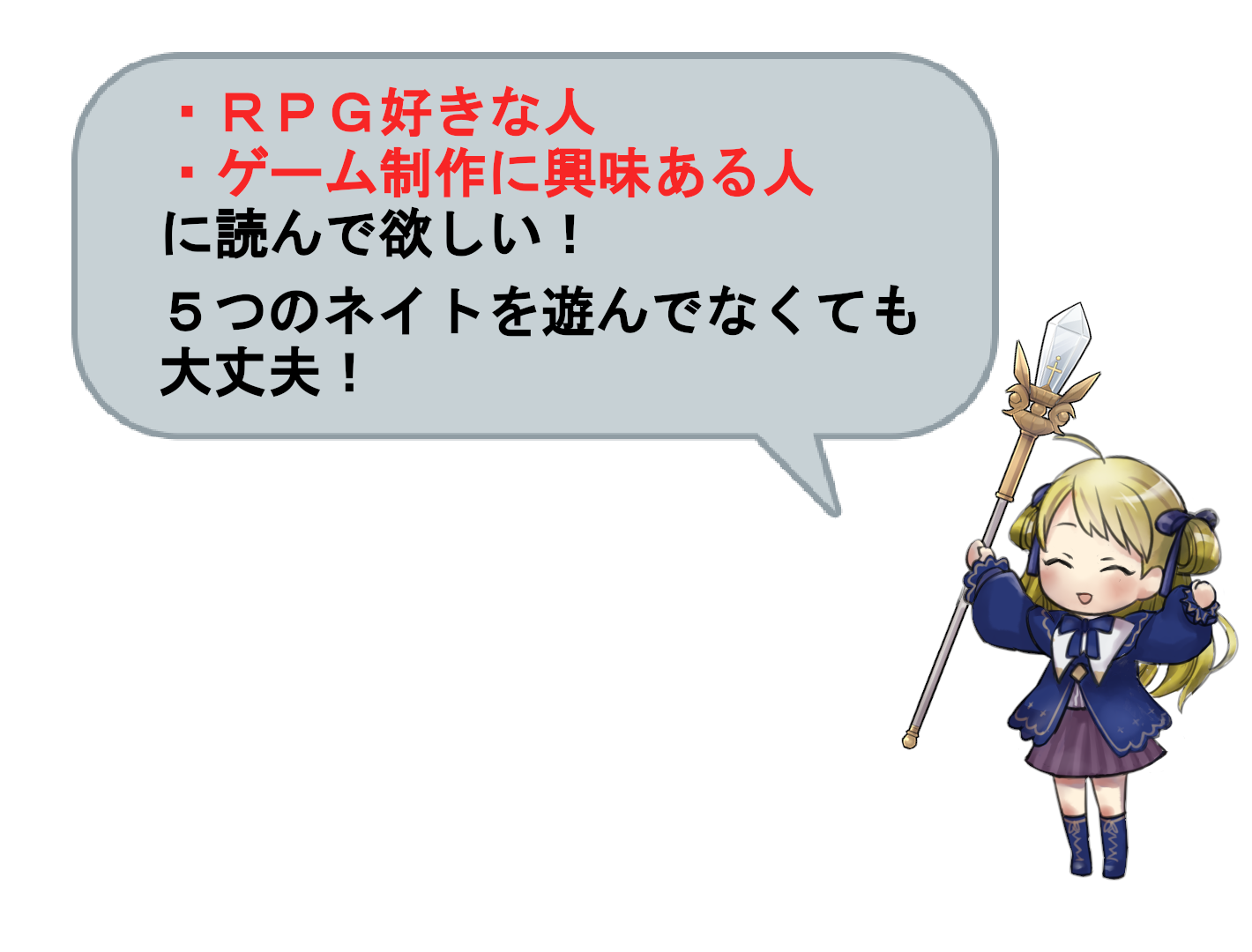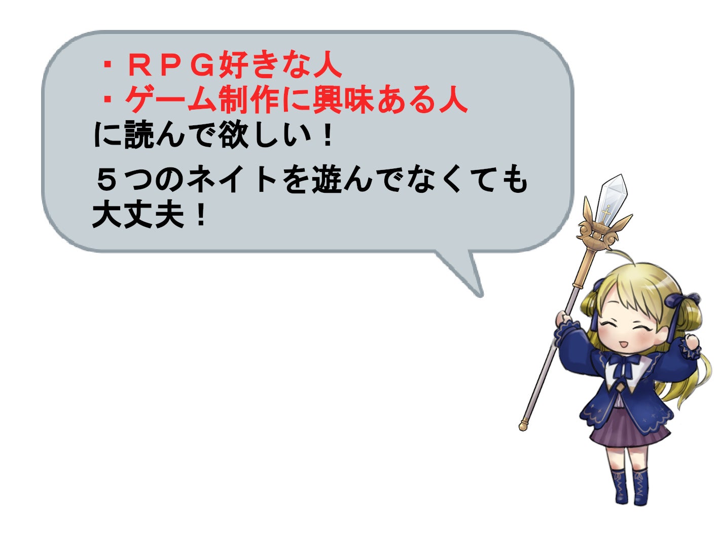 特に、将来ゲームを作ろうと思っている方や、RPGが好きな方におススメでき