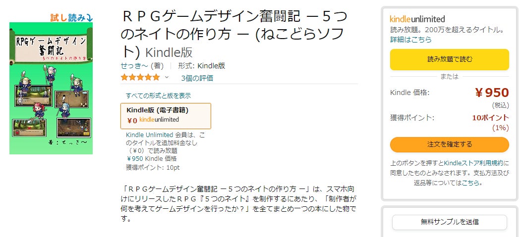 (「5つのネイト+ のゲームデザイン記」の内容は、Kindle Unlimited版で公開する予定はありません。