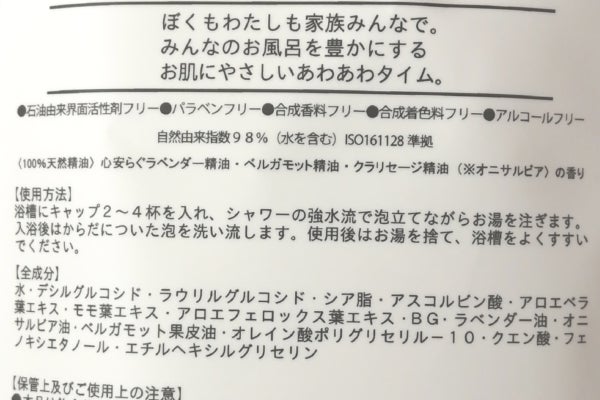 それでもまだ、子どもが使うバブルバス製品に当然のように「水」の次に「ラウレス硫酸Na」が入っている現状に愕然としました。