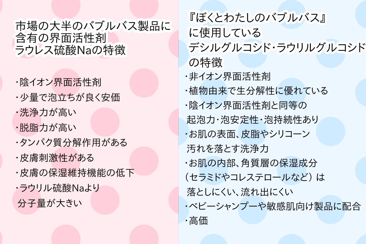 2022年現在、市販のバブルバスのほとんどが、ラウレス硫酸Naを使用しています。