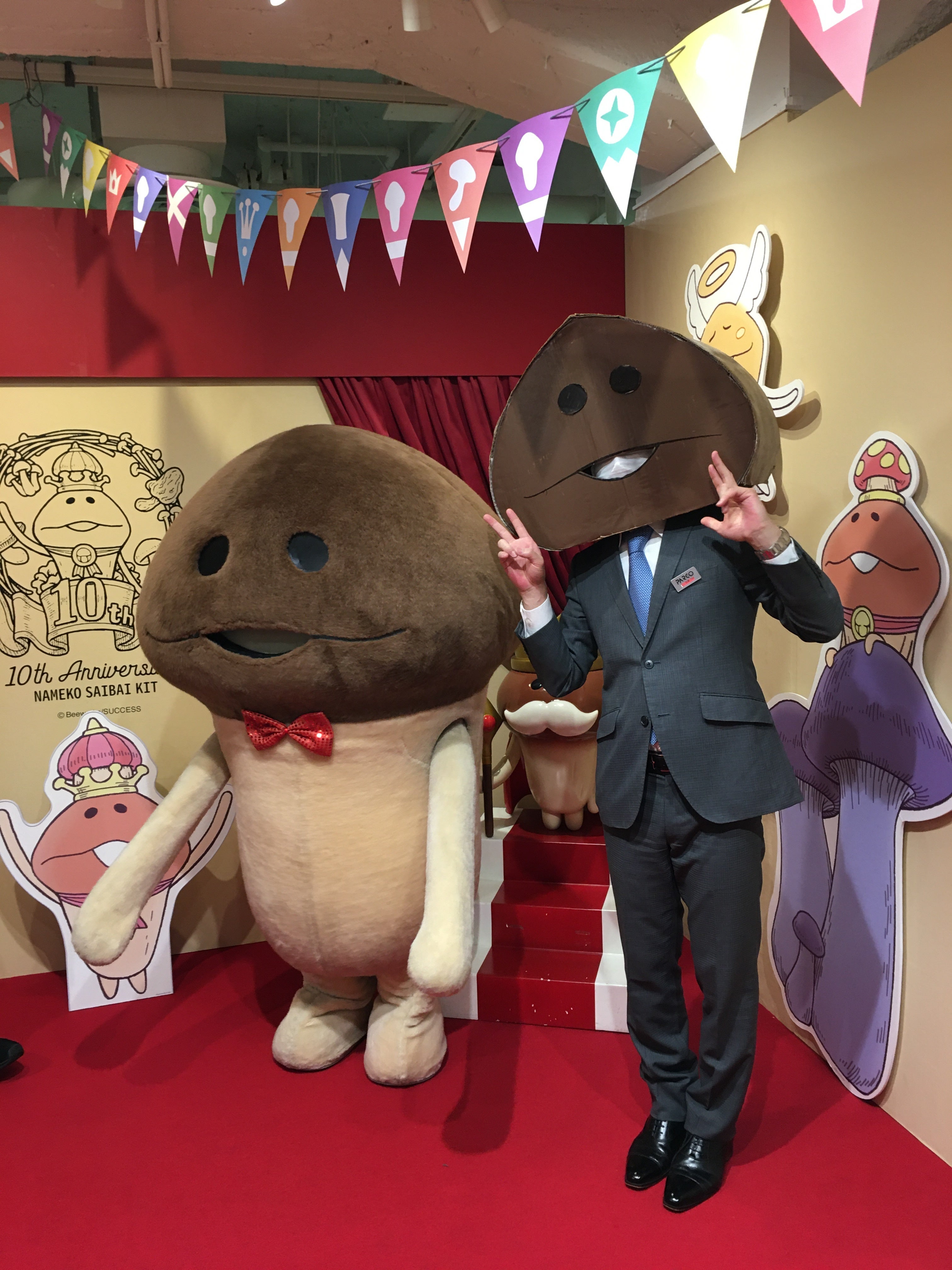 はじめまして、なめこのアプリをつくっている株式会社ビーワークスでなめこの広報を担当しておりますダンボールなめこと申します(画像右)。