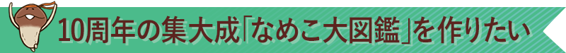 それくらい気合いを入れて頑張りますので、『なめこ栽培キット』10年間のあゆみを刻む「なめこ大図鑑」刊行プロジェクト、応援よろしくお願いいたします!!