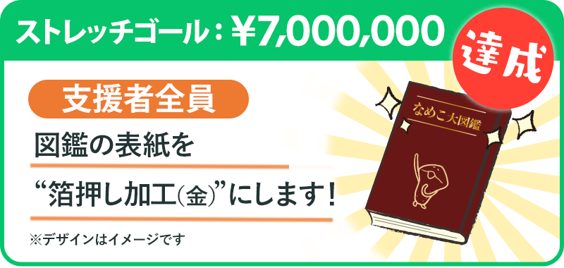 ストレッチゴール[目標700万円]を達成した場合、図鑑表紙のタイトルに”箔押し”加工をします!!