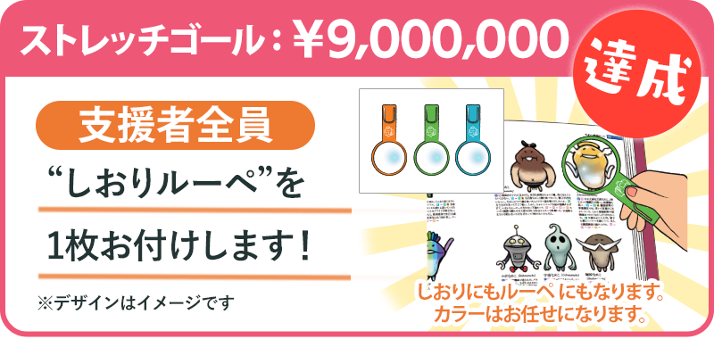 ストレッチゴール[目標900万円]を達成した場合、支援者全員にプラン1口につき1枚「しおりルーペ 」をお付けします。
