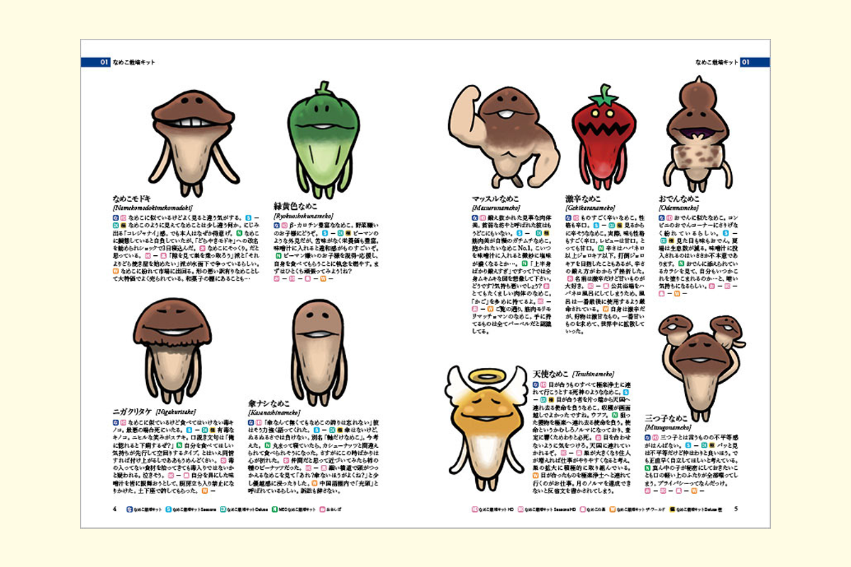 なめこのイラストともに、アプリごとに異なる図鑑説明文もあますことなく収録。