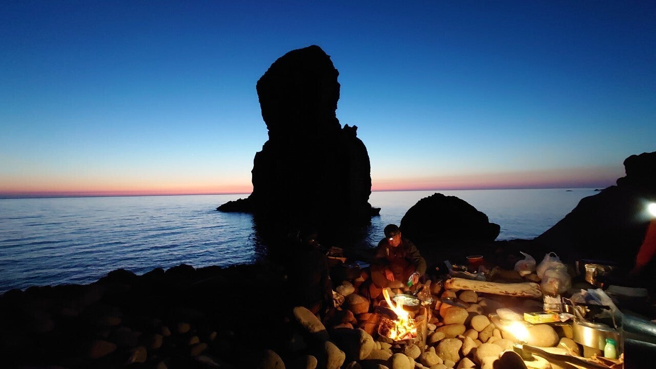 通常の体力は必要ですが、全く初めての方でもちょっと練習すればすぐ海に漕ぎ出す事が可能です。でも簡単ではありません。キャンプ道具、食料、個人装備を詰め込み、知床岬往復70㎞4泊5日の日程(全て好天の場合)になりますから…。