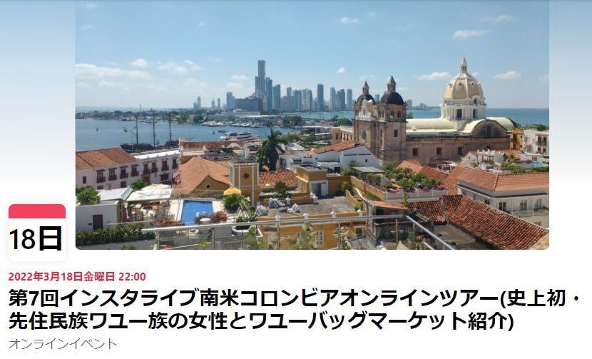 インスタライブ・南米コロンビアオンラインツアー開催(3月18日10:00PM)