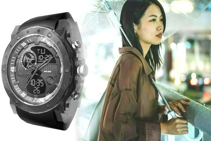5気圧防水機能があり、雨の日でも心配なく使用できます。
