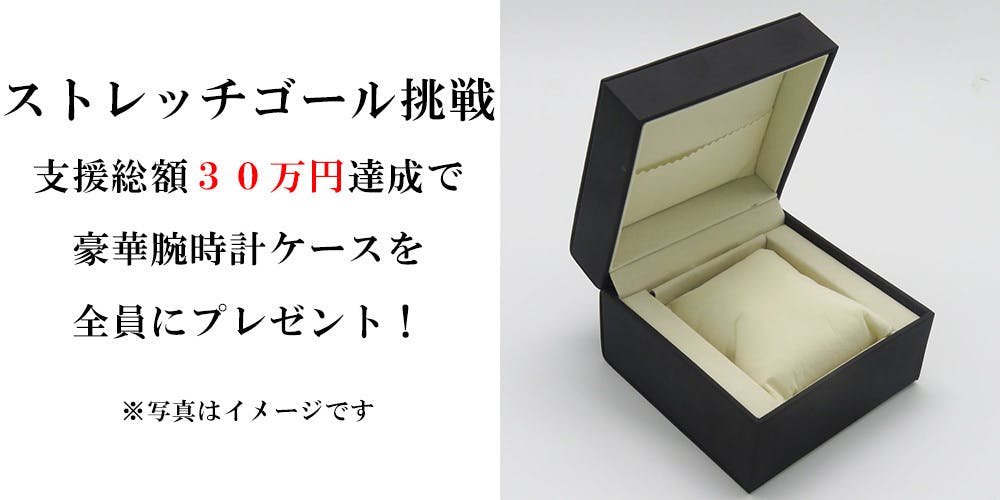 支援総額30万円達成した場合、腕時計1個につき1個腕時計ケースを全員にプレゼントします!