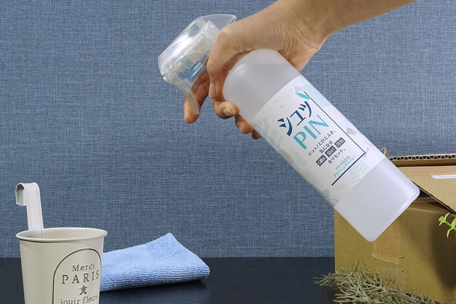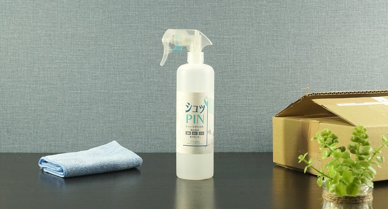 使い方は簡単!出品したいものにシュッシュッと吹きかけてサッと拭き取るだけ!
