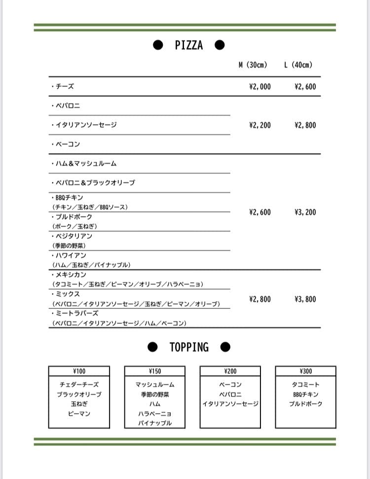 ホール・トッピング/ランチ・ドリンク・サイドの裏表構成になります。