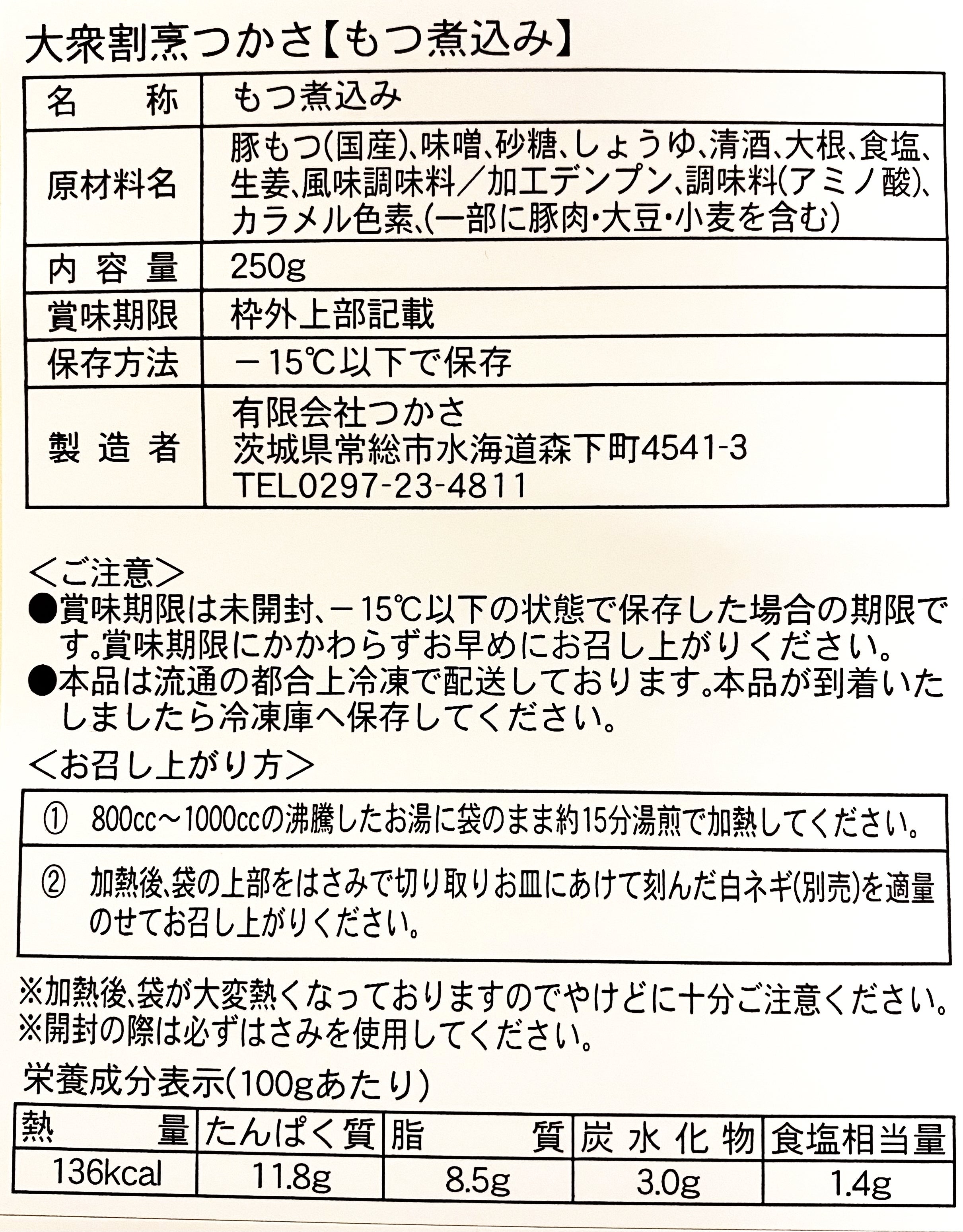 ・2300円 もつ煮込み250g×1袋