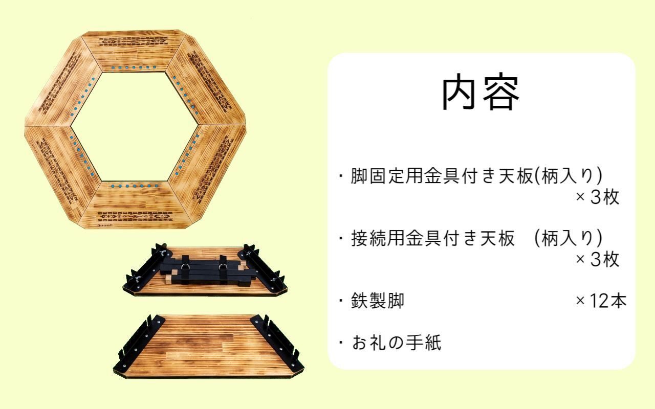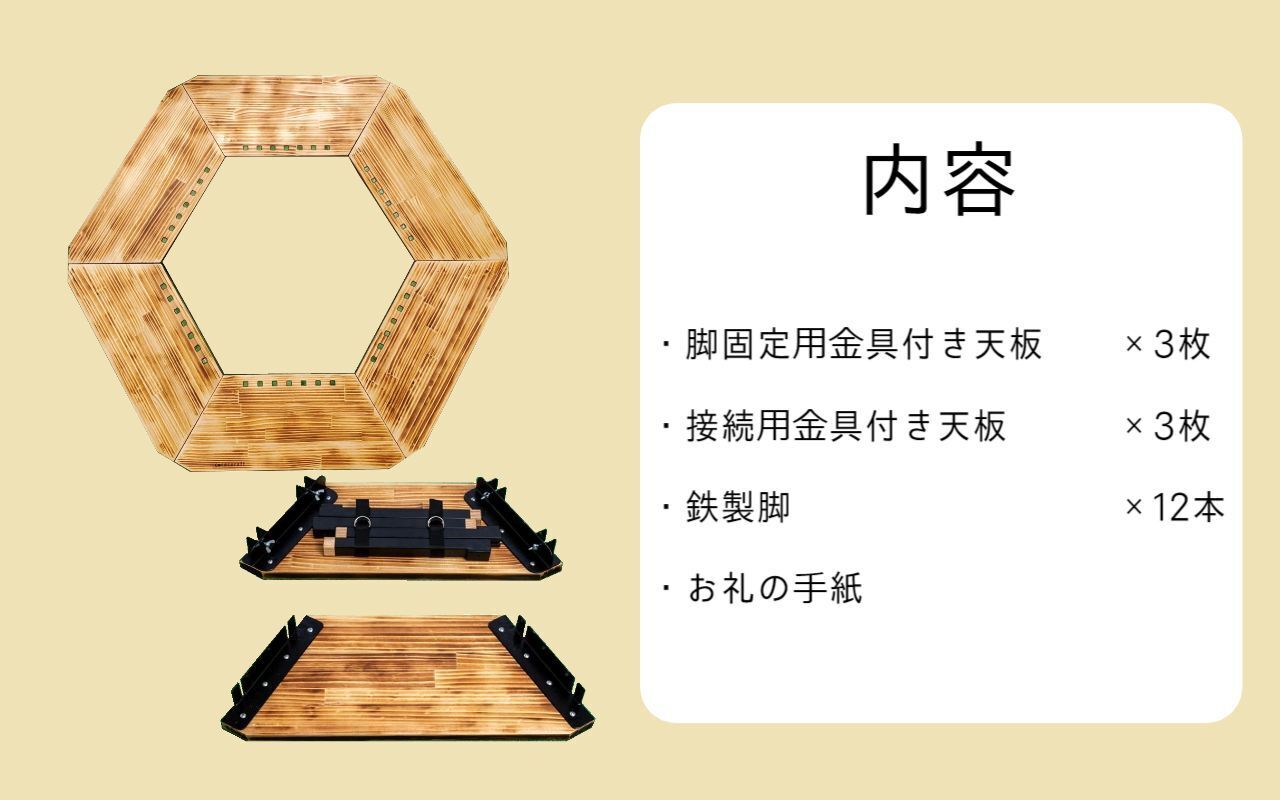 「鉄のプロ」×「木の匠」×「ガラスのクラフト作家」 が作るオリジナルヘキサテーブルと焚き火台です。
