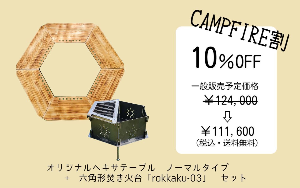 ② ノーマルタイプ + 六角形焚き火台「rokkaku-03」セット ¥124,000(税込)