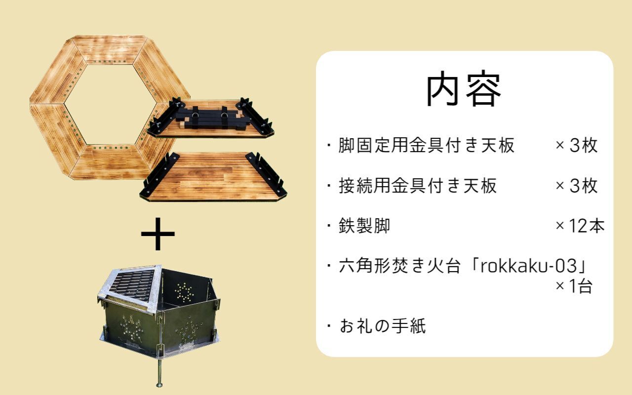 ⑤ 柄入りタイプ + 六角形焚き火台「rokkaku-03」セット ¥127,000(税込)