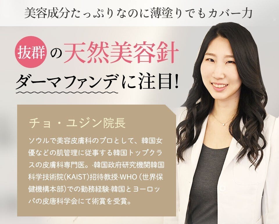 皮膚科専門医としてお肌に良いと思うファンデーションは低刺激なものです。このファンデーションは低刺激で、肌荒れ予防効果が期待できるツボクサ(シカ)などの美容成分が配合されているダーマファンデ 。