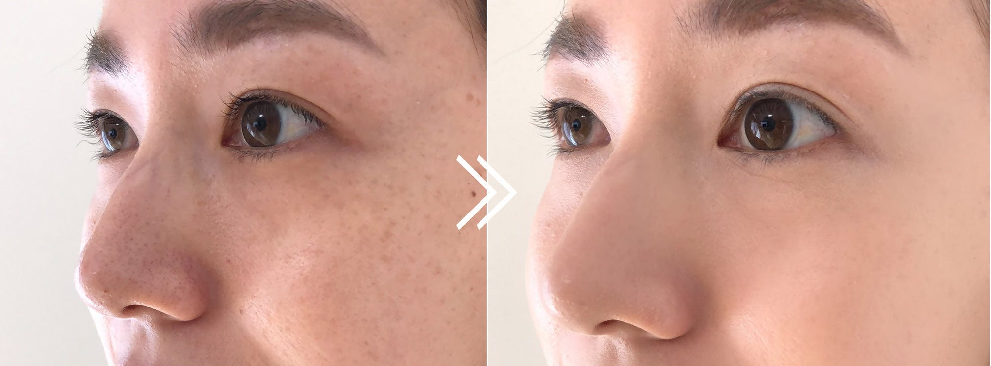 POINT▶鼻のキワはパフの尖った部分を使って塗り残しなくのせましょう